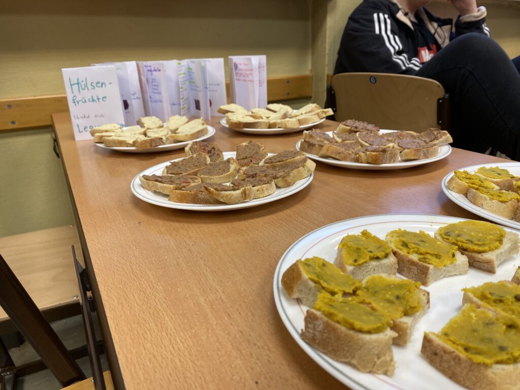 Im Ernährungsunterricht hat sich die 1FA mit dem Thema Hülsenfrüchte beschäftigt und gelernt, dass diese eine wichtige Eiweißquelle sind, besonders für Menschen, die wenig oder kein Fleisch essen. Es wurde ein Minibuch zum Thema gestaltet. Die notwendigen Informationen dazu wurden durch Recherchen im Internet gesammelt. Besonders gefallen hat die Verkostung verschiedener Aufstriche, die aus Hülsenfrüchten zubereitet wurden und die lehrreiche Einheit abgerundet haben.
