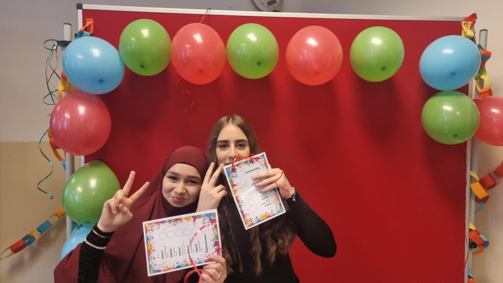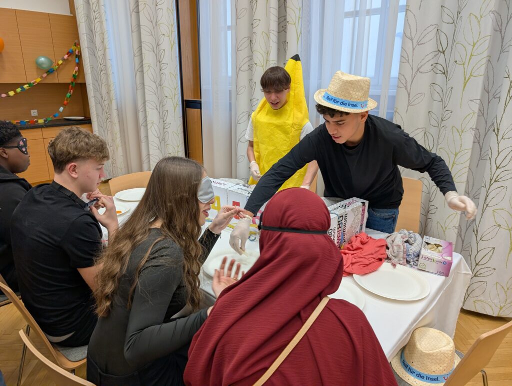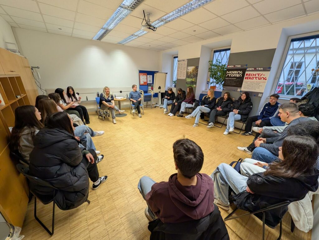 Der Verein Granatapfel besuchte unsere Schule im Rahmen des Ethikunterrichts in der 2FA. Im Workshop „Shalom-Salam-GrüßGott“ erfuhren die Schüler*innen, wie Judentum, Christentum und Islam miteinander verbunden sind und konnten mit vielen interaktiven Aufgaben und Ausstellungsstücken zum Angreifen in die verschiedenen Religionen hineinschnuppern.