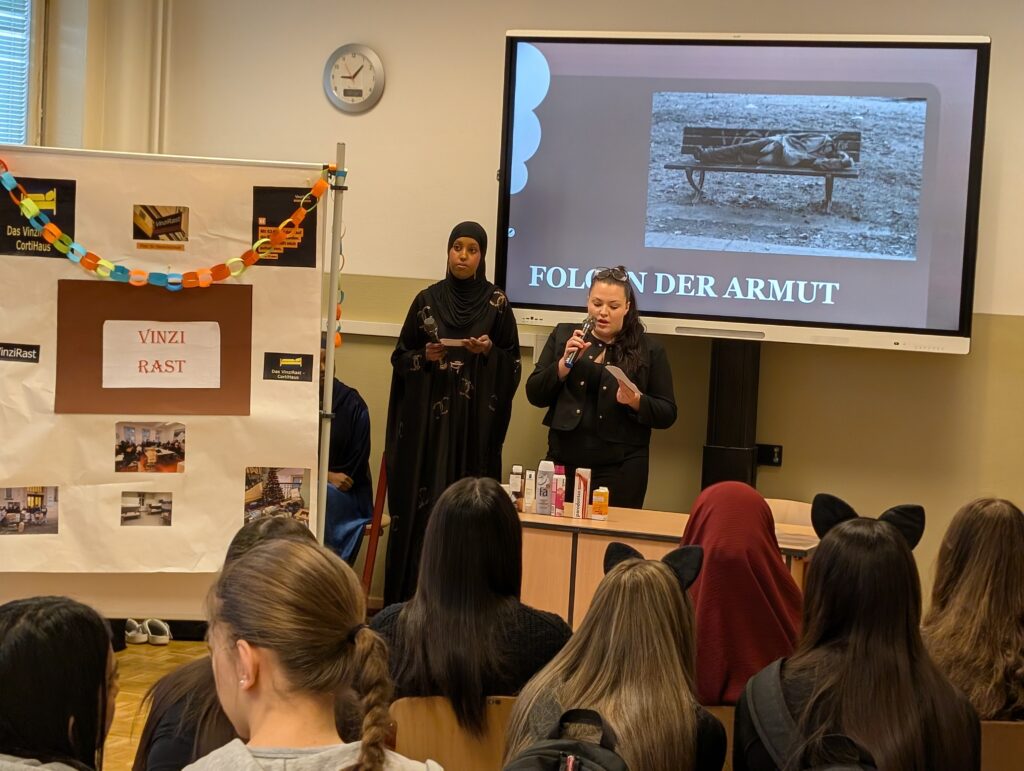 Der Kleiderkreisel zeigte eindrucksvoll, wie Nachhaltigkeit, bewusster Konsum und gemeinschaftliches Handeln miteinander verbunden werden können. Die Einnahmen von 60 € wurden in den Sozialfond der Schule gespendet und die restliche Kleidung wurde ebenfalls an verschieden Stellen wie der VinziRast gespendet.