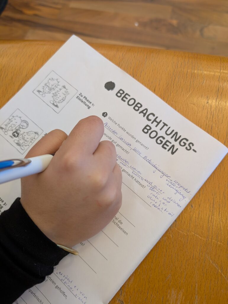Durch praxisnahe Rollenspiele konnten die Schüler*innen ihre Fähigkeiten aktiv erproben und vertiefen. Darüber hinaus setzten sie sich intensiv mit den Unterschieden zwischen Beobachten, Beurteilen und Verurteilen auseinander.